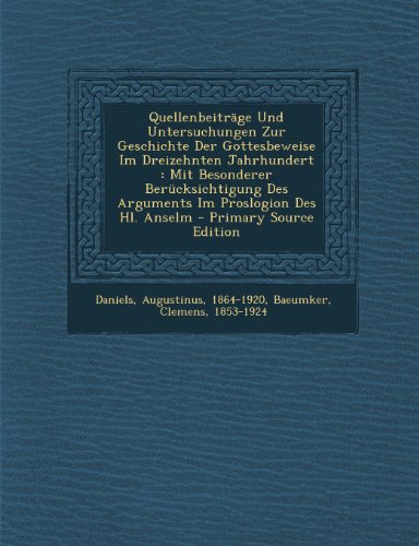 Download Quellenbeitrage Und Untersuchungen Zur Geschichte Der Gottesbeweise Im Dreizehnten Jahrhundert: Mit Besonderer Berucksichtigung Des Arguments Im Proslogion Des Hl. Anselm PDF